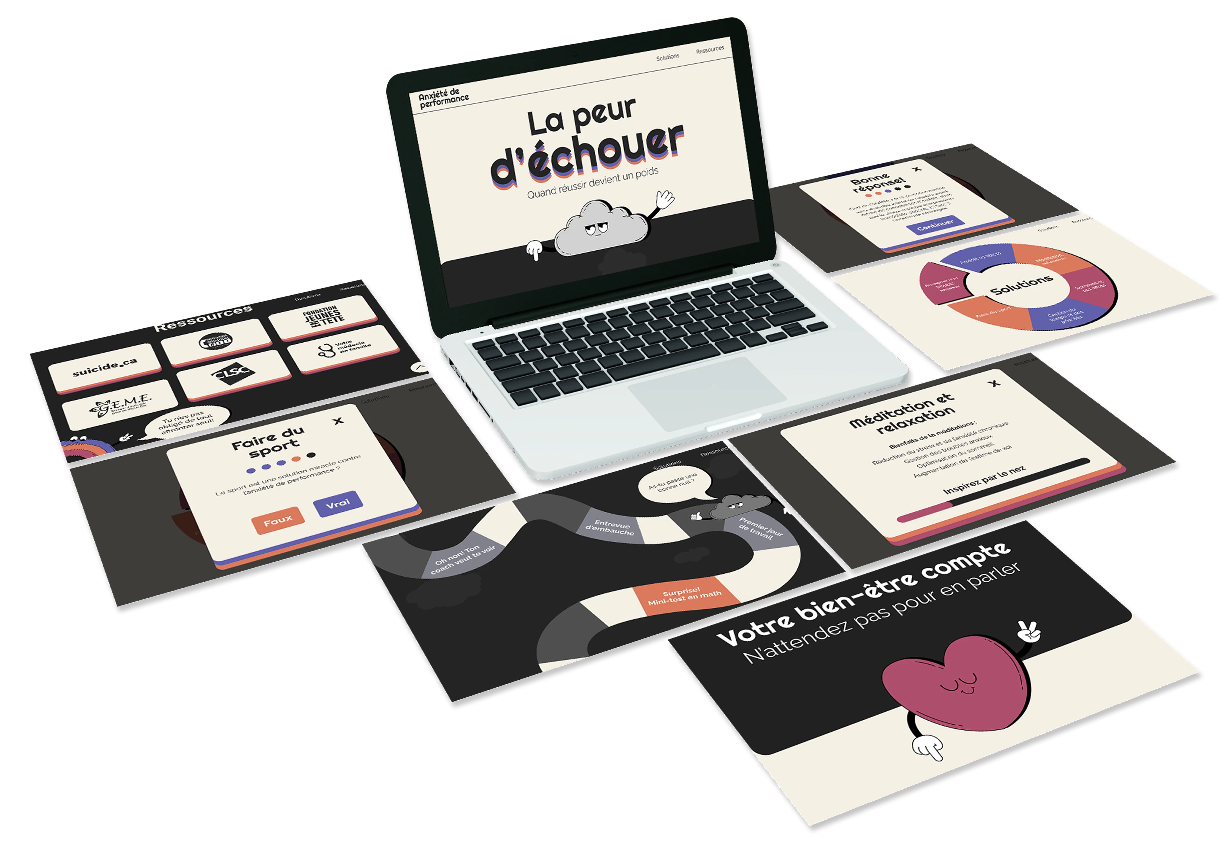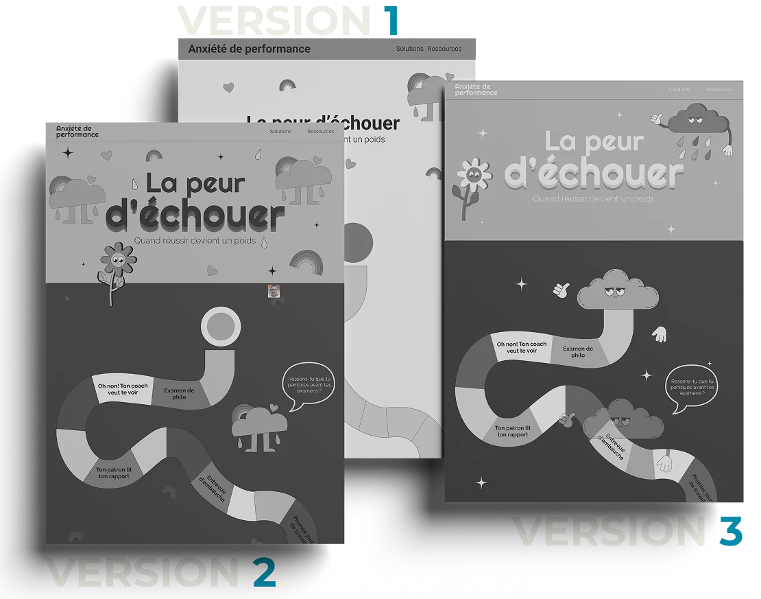 La peur d’échouer est une expérience web visant à s’ensibiliser les 15-25 ans sur l’enjeu de l’anxiété de performance.