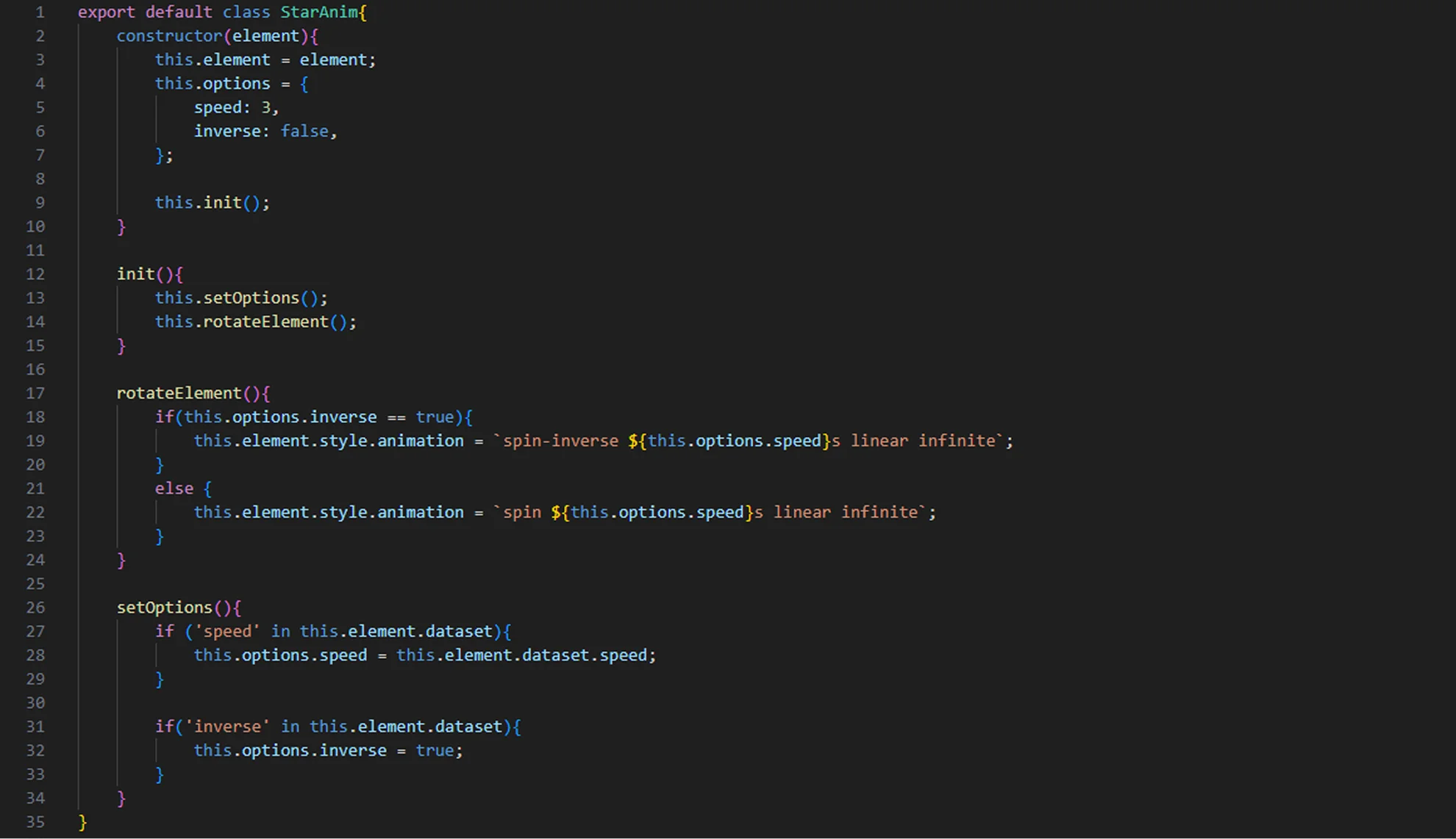 Code composante JS animation étoiles