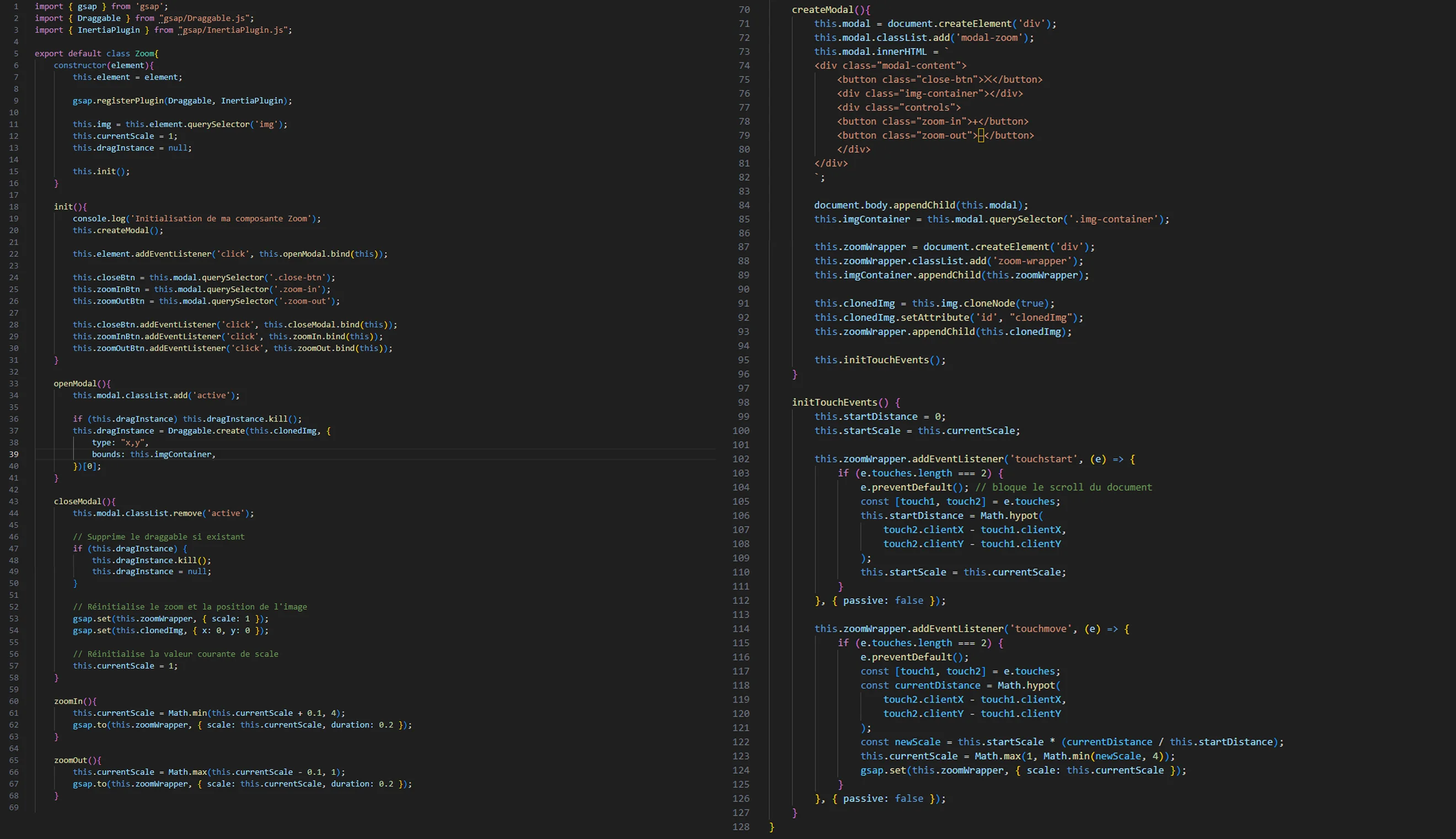 Code composante JS zoom image